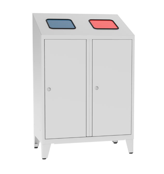 Werkstoffsammelbehälter für die Verwendung in Innenräumen für verschiedene Abfälle, wie zum Beispiel für Kunststoff, Papier, Glas. Der Korpus ist aus stabilem Stahlblech konstruiert und mit Orangenhaut-Pulverbeschichtung hochwertig beschichtet. Selbstschließende Deckel verhindern, dass Gerüche...