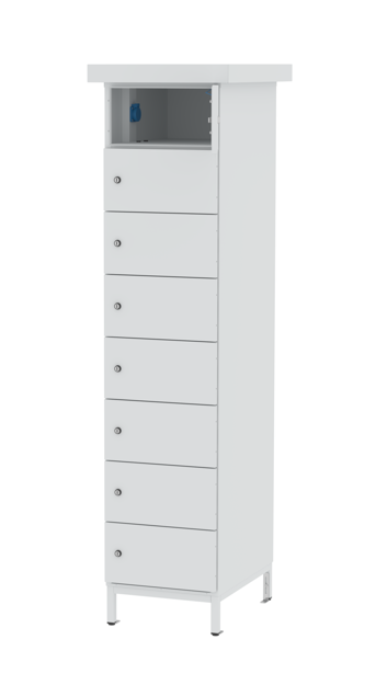 Der Akkuladeschrank ist für das Aufladen der Batterien von Fahrrädern und Elektrorollern bestimmt. Er kann sowohl im Innen- als auch im Aussenbereich verwendet werden. Der Schrank entspricht der Schutzart IP54. Die Fächer sind geräumig genug, um den Akku zu laden und gleichzeitig Werkzeug und Fahrradzubehör zu verstauen. Jedes Fach verfügt über eine Steckdose der Schutzart IP54.