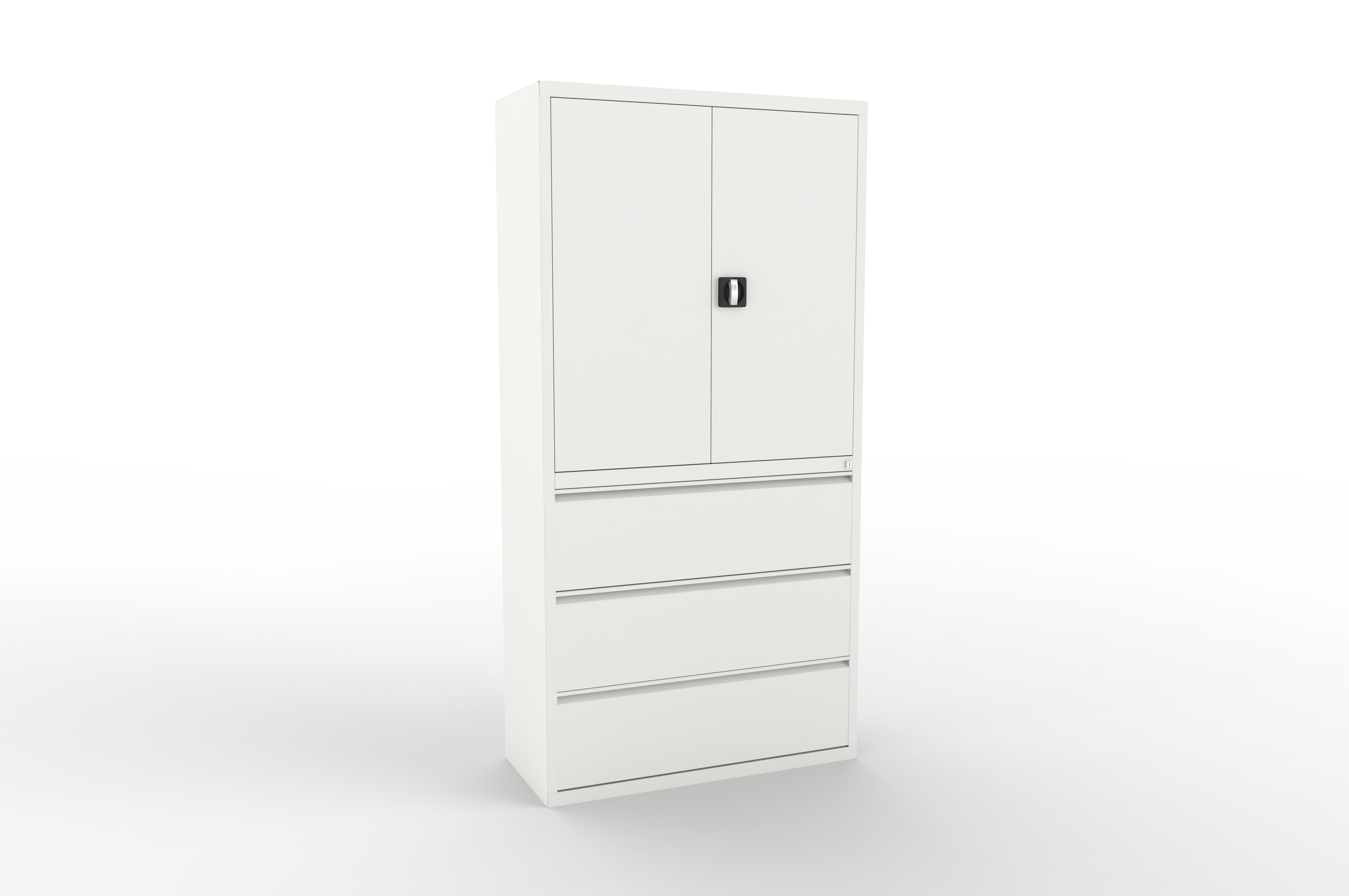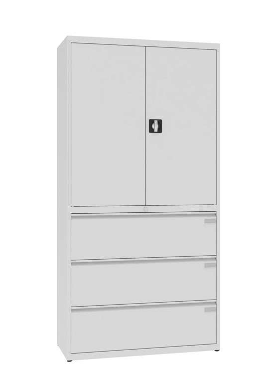 Metallschrank mit Akten- und Hängeregistraturfunktion – robust und sofort einsatzbereit Dieser hochwertige Metallschrank vereint praktische Aufbewahrung und durchdachte Funktionalität. Der obere Teil des Schranks bietet Platz für zwei Reihen Aktenordner und ist dank höhenverstellbarer...