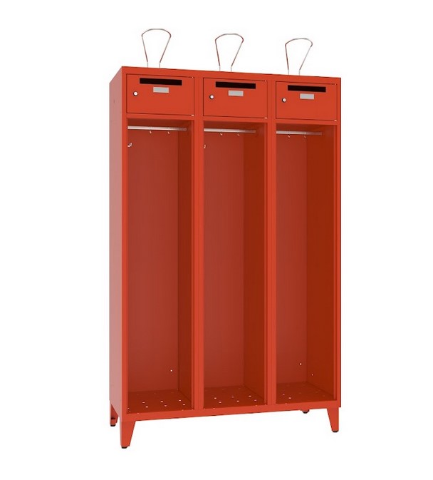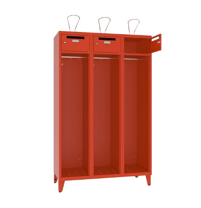 Feuerwehr Garderobenschrank 3 Abteile mit Stollenfüsse u. abschliessbarem Wertsachenfach mit Einwurf