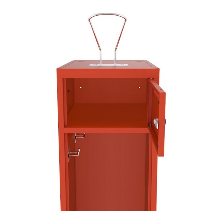 Abnehmbare, verzinkte Helmhalterung auf der Schrankoberseite (Höhe: 21 cm) – für schnellen Zugriff und sichere Lagerung.