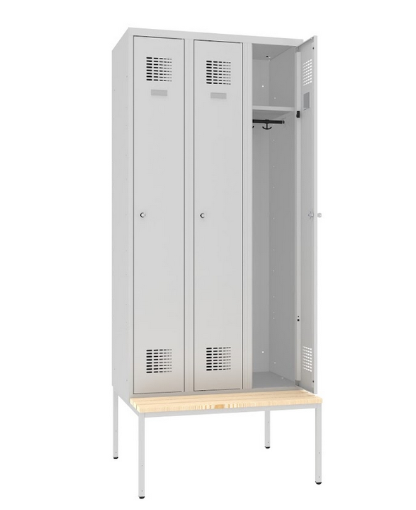 Garderobenschrank 3 Abteile mit Sitzbank Standard