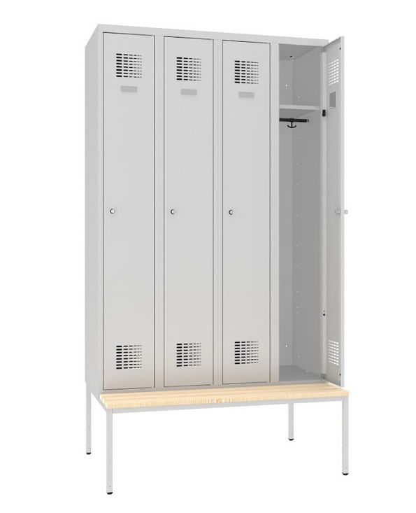 Garderobenschrank 4 Abteile mit Sitzbank Standard