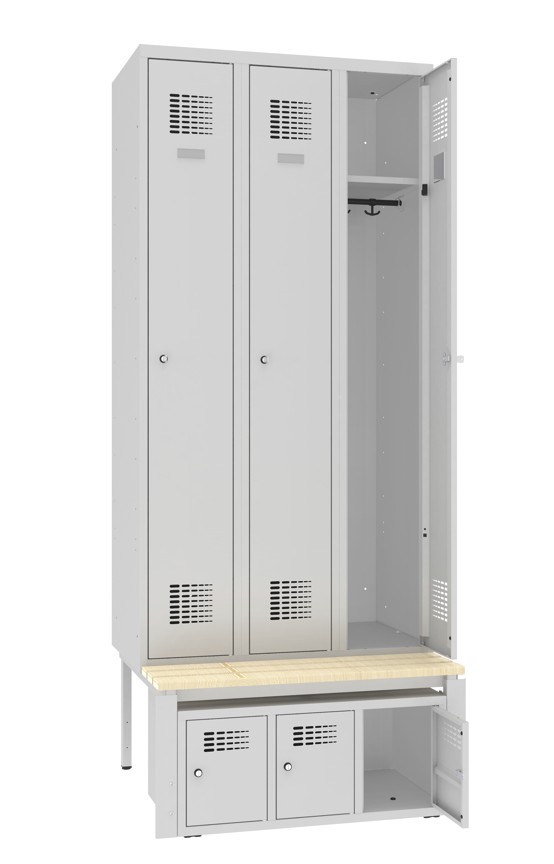 Garderobenschrank 3 Abteile mit Sitzbank und abschliessbarem Schuhfach