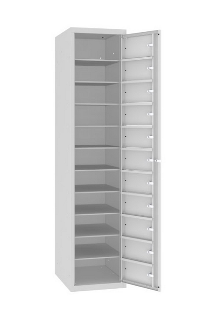 Wäscheverteilschrank mit 11 abschliessbaren Fächern – Effiziente Wäscheorganisation mit System Unser hochwertiger Wäscheverteilschrank mit 11 einzeln abschliessbaren Fächern bietet eine durchdachte und sichere Lösung für die strukturierte Wäscheverteilung in Betrieben mit hoher...