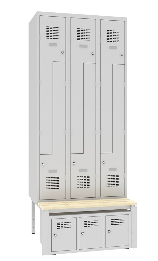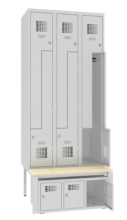 Z-Garderobenschrank 6 Fächer mit Sitzbank und abschliessbarem Schuhfach
