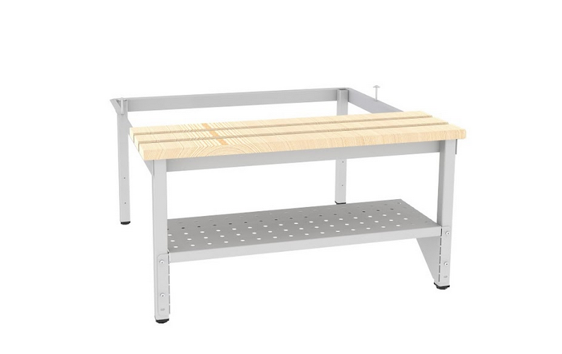 Perforierte Schuhröste bieten eine praktische und platzsparende Lösung zur übersichtlichen Aufbewahrung von Schuhen unter Garderobenschränken und Schliessfachschränken mit untergebauten Sitzbänken. Die Schuhröste sind separat erhältlich und lassen sich einfach selbst montieren, für maximale Flexibilität und hohe Funktionalität
