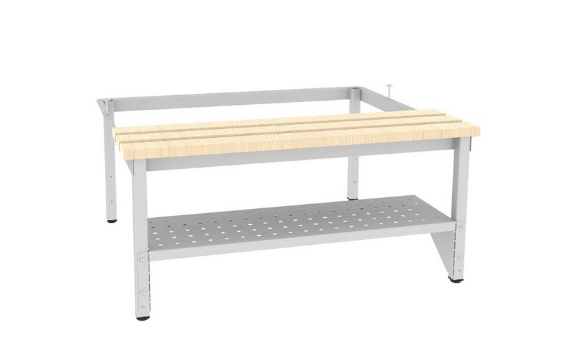 Perforierte Schuhröste bieten eine praktische und platzsparende Lösung zur übersichtlichen Aufbewahrung von Schuhen unter Garderobenschränken und Schliessfachschränken mit untergebauten Sitzbänken. Die Schuhröste sind separat erhältlich und lassen sich einfach selbst montieren, für maximale Flexibilität und hohe Funktionalität