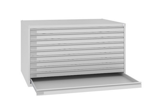 Planarchivierungsschrank zur Aufbewahrung von Zeichnungen, Karten und Dokumenten von max. Größe A0.