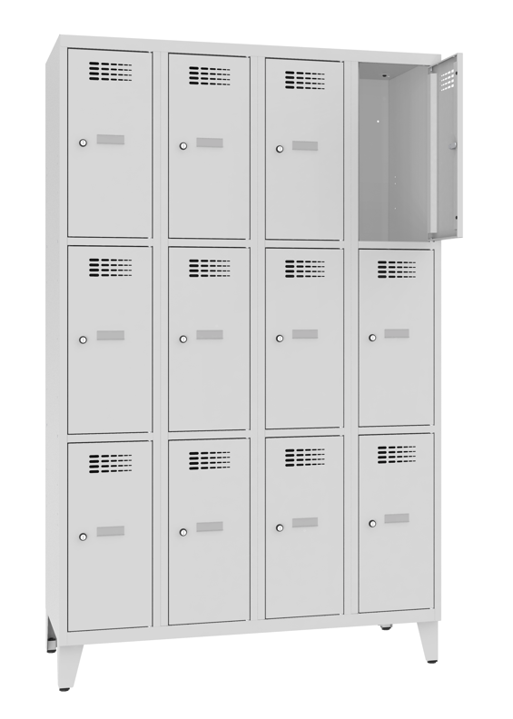 Schliessfachschrank 4 Abteile 12 Fächer mit Stollenfüsse 30 cm Abteilbreite