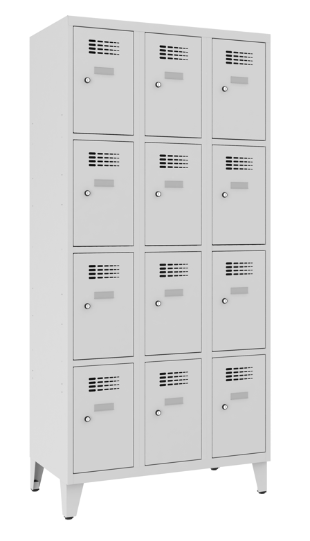 Dieser Schliessfachschrank besteht aus 3 Abteilen mit jeweils 4 Fächer übereinander. Der Korpus ist aus stabilem Stahlblech modern konstruiert und komplett verschweisst. Wir bieten den Korpus und die Türen in 14 verschiedenen RAL-Farben hochwertig lackiert an. Die elegant designten...