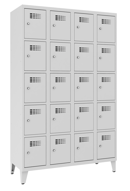 Dieser Schliessfachschrank besteht aus 4 Abteilen mit jeweils 5 Fächer übereinander. Der Korpus ist aus stabilem Stahlblech modern konstruiert und komplett verschweisst. Wir bieten den Korpus und die Türen in 14 verschiedenen RAL-Farben hochwertig lackiert an. Die elegant designten...