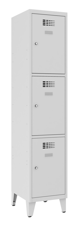 Dieser Schliessfachschrank besteht aus 1 Abteil mit 3 Fächer übereinander. Der Korpus ist aus stabilem Stahlblech modern konstruiert und komplett verschweisst. Wir bieten den Korpus und die Türen in 16 verschiedenen RAL-Farben hochwertig lackiert an. Die elegant designten Lüftungslöcher heben...