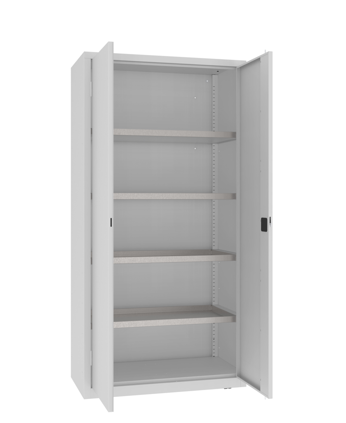 4 verzinkte Wannenböden mit einer Tragkraft von 60 kg. Material: Korpus und Türen aus 1 mm Stahlblech Maximale Korpusbelastung: 700 kg Flügeltüren mit 3-Punkt-Verriegelung Drehgriff mit Zylinderschloss, inklusive 2 Schlüsseln Herausnehmbare Zubehörbehälter Von innen verstellbare...