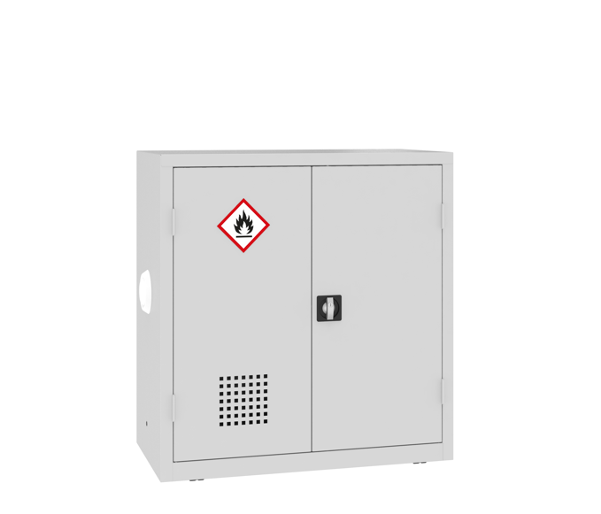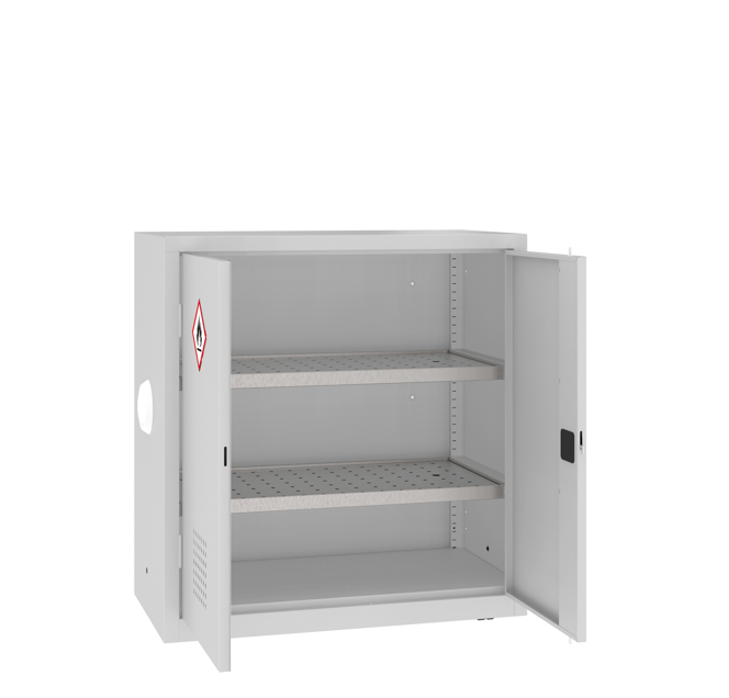 2 verzinkte Regalwannen mit einer Tragfähigkeit von 60 kg mit alle 25 mm verstellbaren Ablaufplatten Material: Korpus und Türen aus 1 mm Stahlblech Maximale Korpusbelastung: 400 kg Flügeltüren mit 3-Punkt-Verriegelung Drehgriff mit Zylinderschloss, inklusive 2 Schlüsseln...
